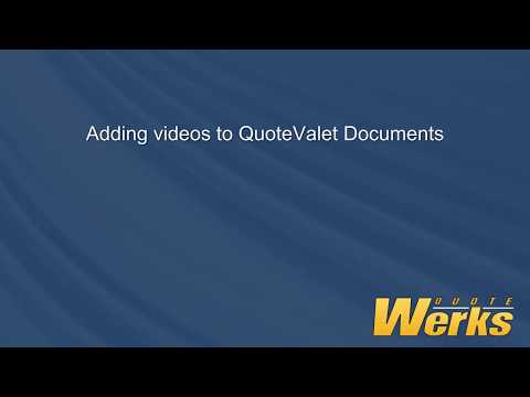 Add Videos to QuoteValet DocumentsIn this short video we demonstrate how you can quickly and easily link YouTube videos to your QuoteValet documents. -